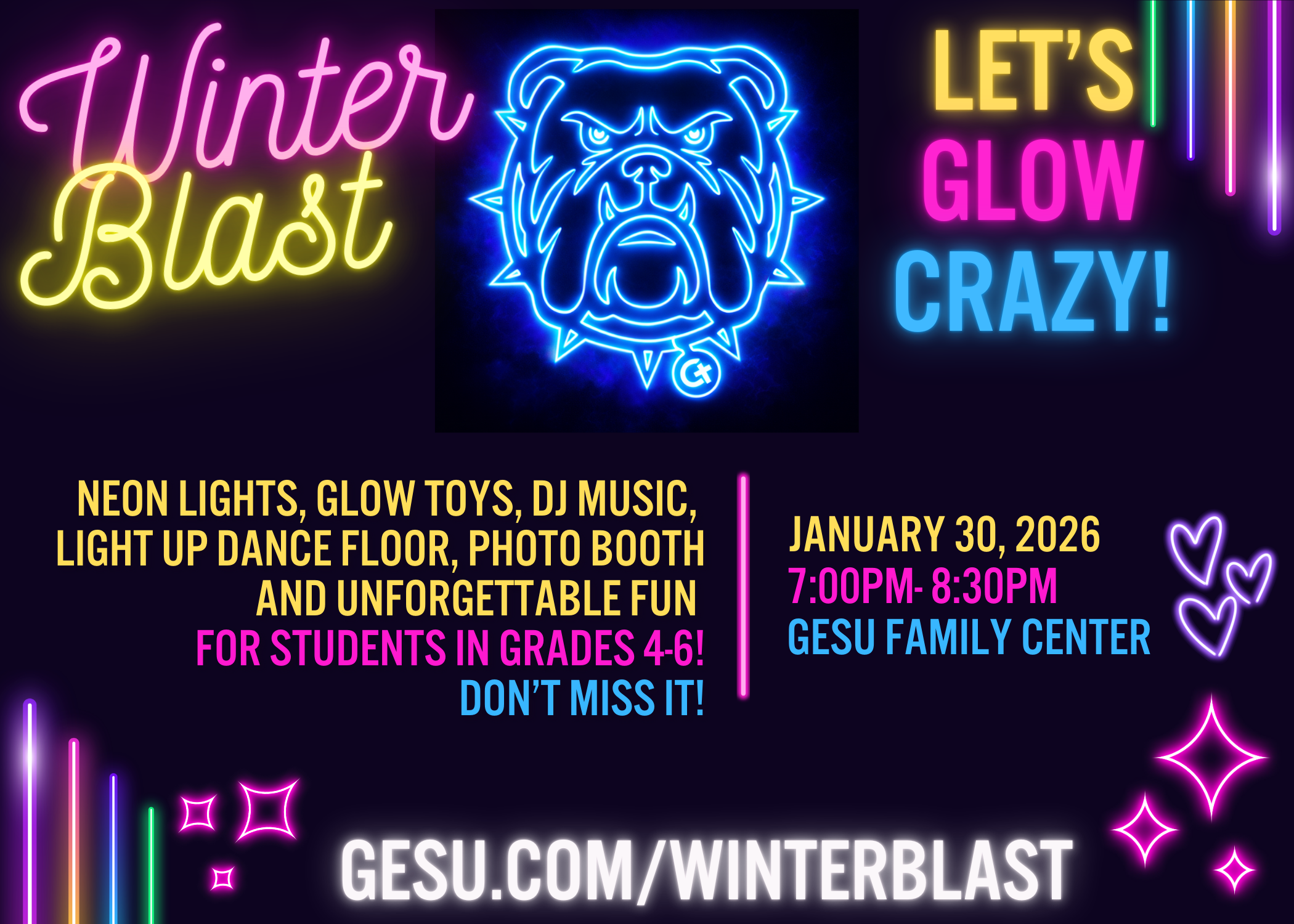 Presale ticket form for the Gesu PTO Winter Blast on Friday, January, 30 from 7:00 PM until 8:30 PM. This is for students in grades 4, 5, and 6. Tickets cost $10.00 per student.