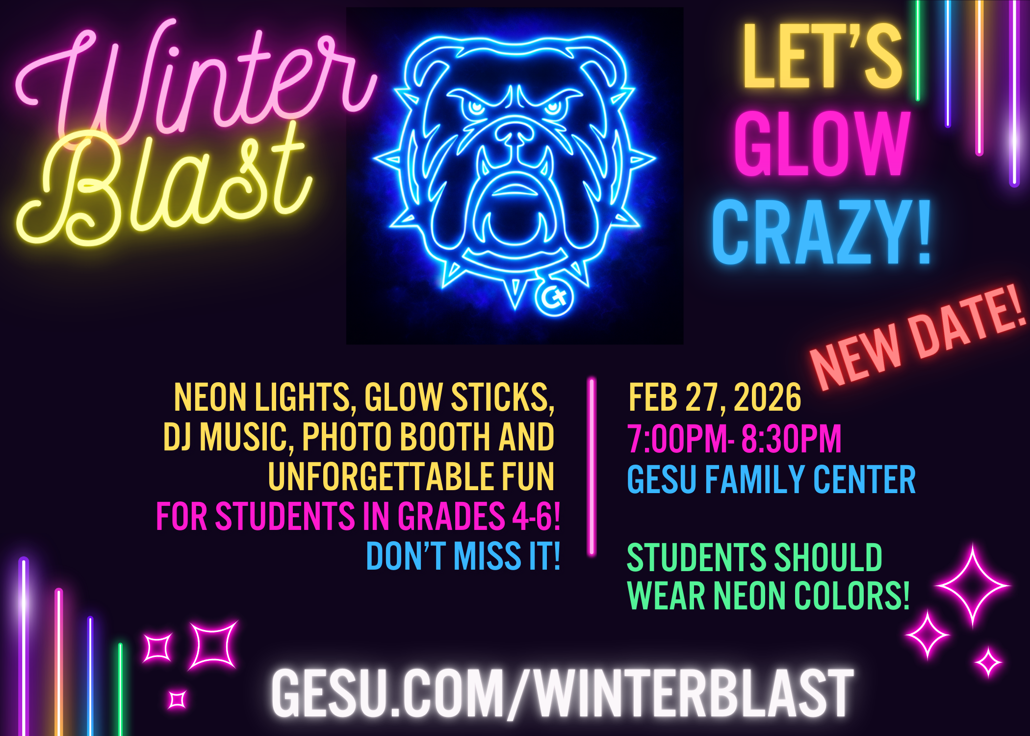 Presale ticket form for the Gesu PTO Winter Blast on Friday, Feb 27 from 7:00 PM until 8:30 PM. This is for students in grades 4, 5, and 6. Tickets cost $10.00 per student.